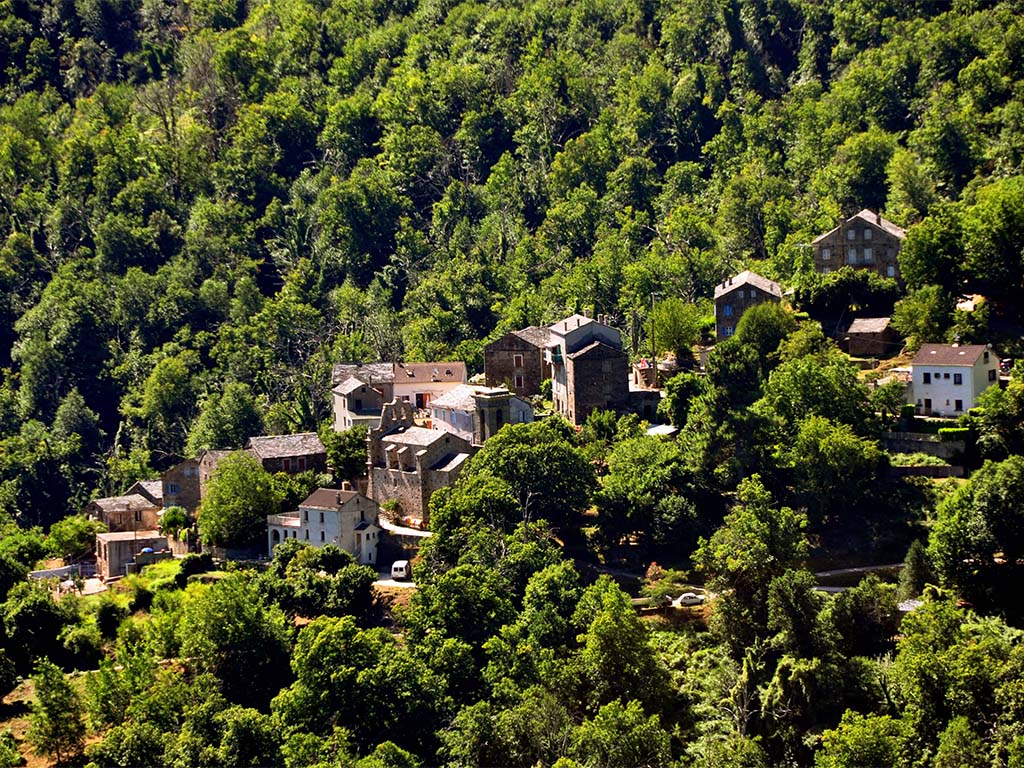 Beau village traditionnel de la Castagniccia niché au coeur de la chataigneraie.