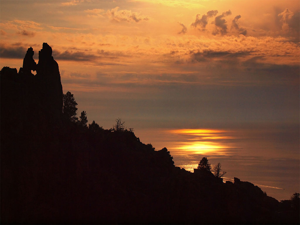 Ce paysage a inspiré depuis toujours les peintres et écrivains, qui n’ont cessé de décrire les formes fantasmagoriques qu’ils voyaient dans ces aiguilles rocheuses. Maupassant, visitant la Corse, les décrivit en ces termes : « Je m’arrêtais d’abord stupéfait devant ces étonnants rochers de granit rose, hauts de quatre cents mètres, étranges, torturés, courbés, rongés par le temps, sanglants sous les derniers feux du crépuscule et prenant toutes les formes comme un peuple fantastique de contes féériques, pétrifié par quelque pouvoir surnaturel. J’aperçois alternativement deux moines debout, d’une taille gigantesque ; un évêque assis, crosse en main, mire en tête ; de prodigieuses figures, un lion accroupi au bord de la route, une femme allaitant son enfant et une tête de diable curieuse, cornue, grimaçante, gardienne sans doute de cette foule emprisonnée en des corps de pierre ».